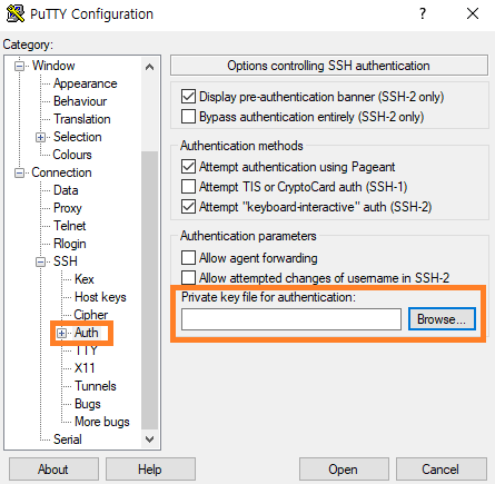 -> PuTTY 에서 .pem Load