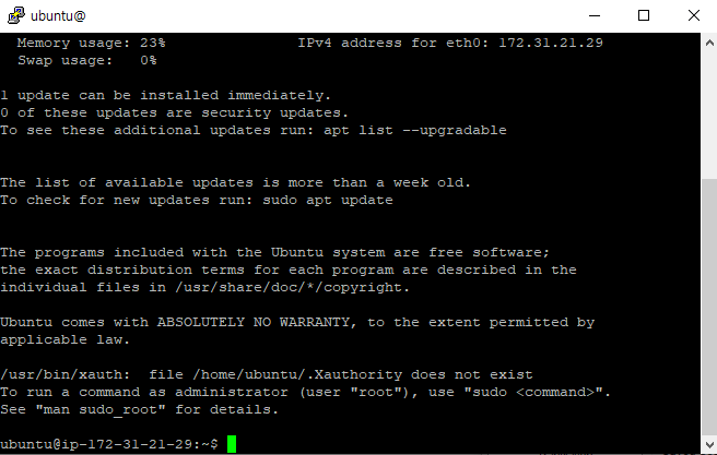 -> Putty 실행 화면 & update