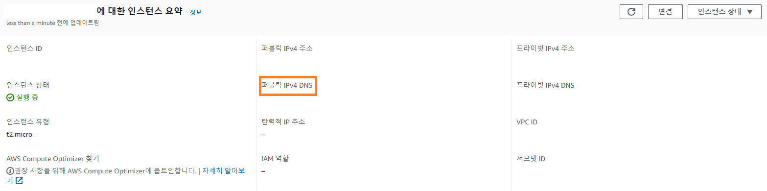 -> AWS 퍼블릭 IPv4 DNS를 복사해서 putty에서 실행