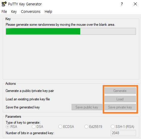 -> 아까 생성한 .ppk 파일 로드