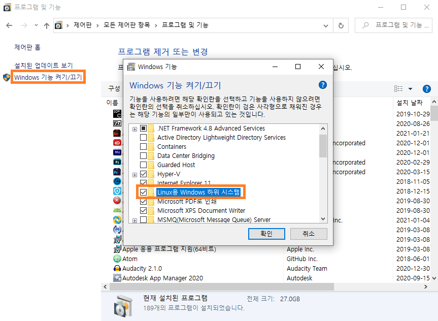-> Window에 우분투 설치하기 위한 과정, 재시작 필요