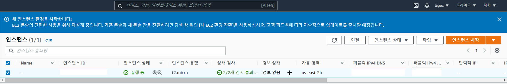 -> 인스턴스가 정상적으로 동작 중인것을 확인