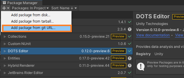 Unity Study - Entities, Dots (how to install entities package)