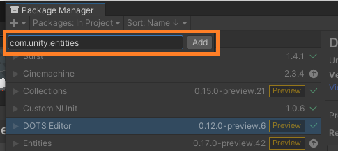 - input "com.unity.entites"